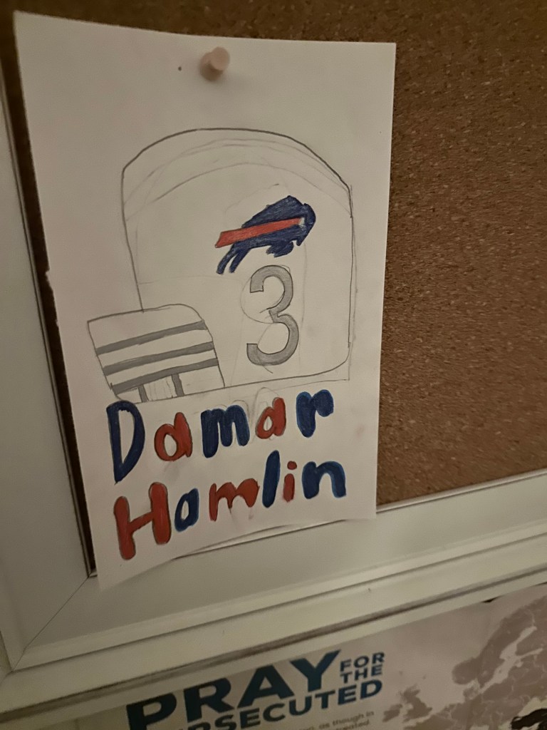 Immediately my daughter said, “We MUST pray NOW!” So my girlie led us in a prayer for, Buffalo Bills, Damar Hamlin. Her prayer was fervent and brought me to tears.